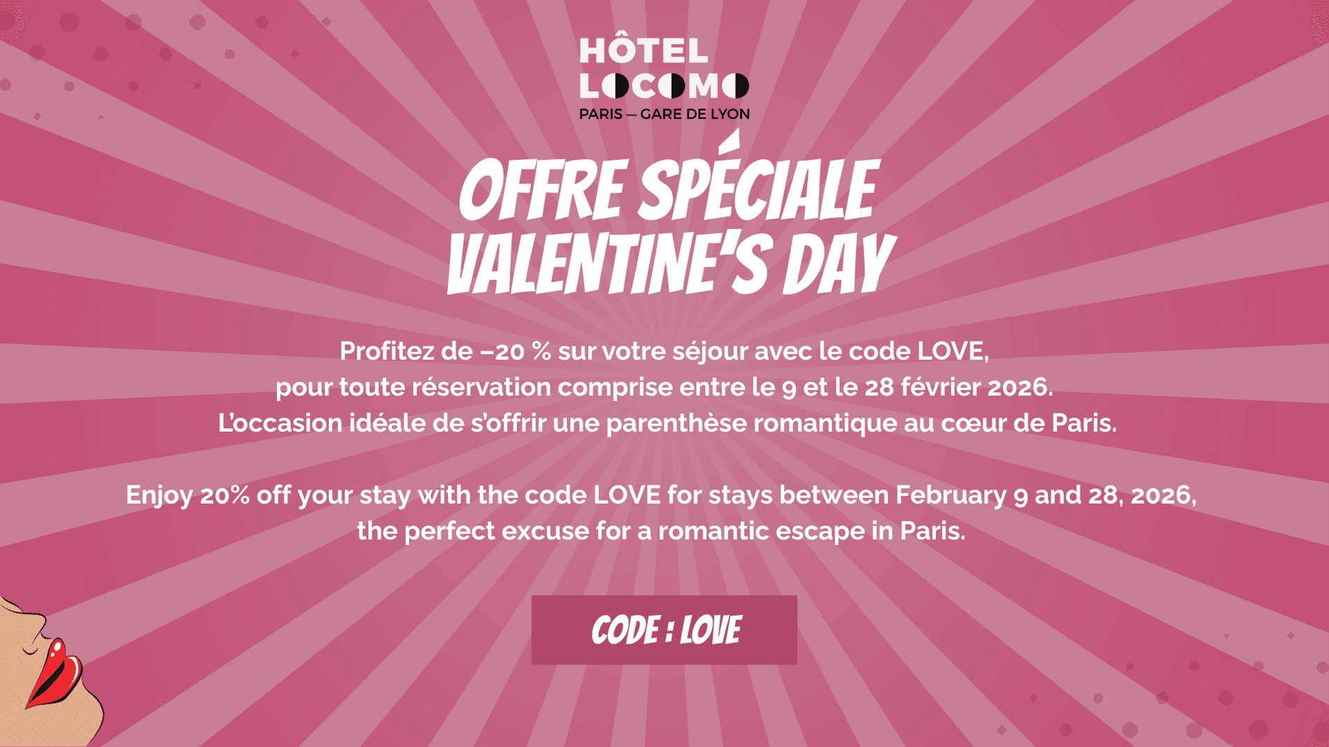 Offrez-vous une parenthèse à deux avec notre offre romantique. Séjour cosy, attentions délicates et cadre chaleureux… Locomo, votre complice pour des instants précieux.